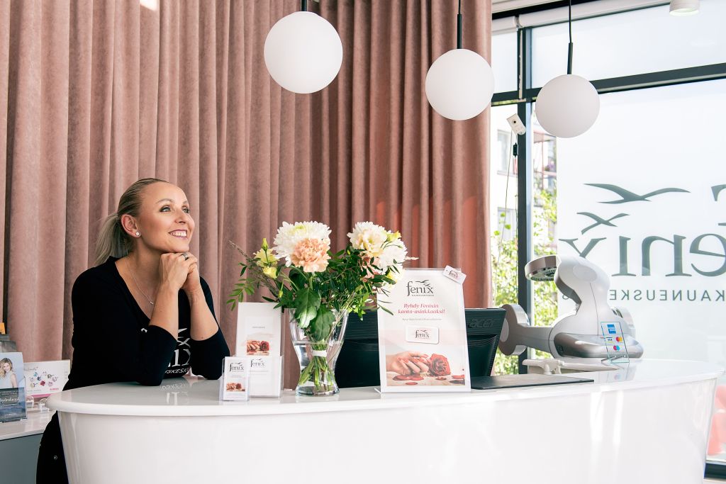 Tämä tarkoittaa, että Fenixissä palvelukokemus alkaa aina siitä hetkestä, kun asiakas avaa ulko-oven ja päättyy vasta, kun asiakas sulkee oven. Marjon mielestä asiakas jätetään niin Suomessa kuin ulkomaillakin aivan liian usein huhuilemaan itsekseen ja siitä hän ei kerta kaikkiaan pidä. Siksi niin ei tehdä koskaan hänen omissa kauneushoitoloissaan.