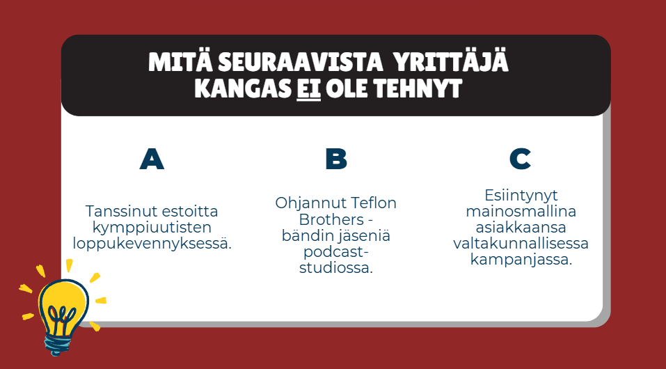 Lokakuu on varsinainen 10v-juhlakuukausi, sillä kuten jo mainitsin: Toteuttamo Verbaali kääri hihat työnteon merkiksi 1.10.2015. Joten oikeat vastaukset paljastetaan lokakuussa yritykseni Facebook-sivuilla yksi kerrallaan. Luvassa ehkä myös pientä tarinointia oikeiden – tai väärien vastausten – inspiroimana. Tulehan taajuuksille: https://www.facebook.com/toteuttamoverbaali.