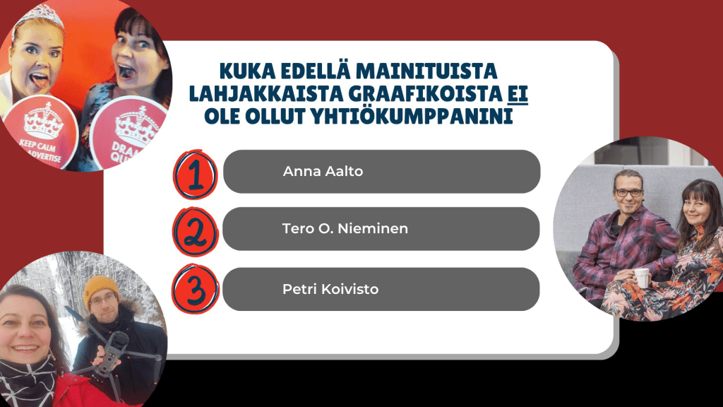 Ensimmäinen kysymys pureutui yritykseni graafiseen ilmeeseen.