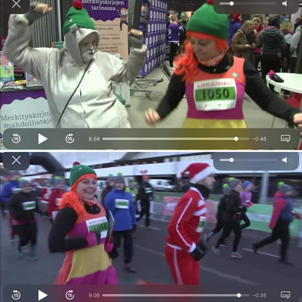 Joulujuoksusta uutisoitiin päivän päätteeksi Kymmenen uutisten loppukevennyksessä. Screenshotit uutispätkästä todistavat, että siellä Helga (yrittäjä Kangas) ja Hugo (yrittäjä Aalto) jammailevat ja Helga myös juoksee, totta kai. Hugo kannusti villisti sekä Helgaa että kaikkia muita juoksijoita.