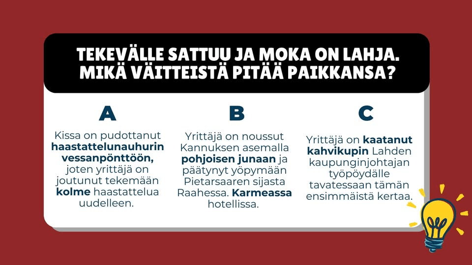 Eli oikea vastaus on tällä kertaa B. Sattumus, josta on dokumentoituna oma tarinansa blogiini: