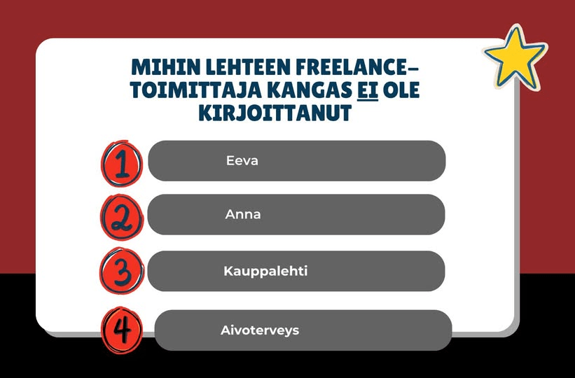 Vuosien varrella olen kuitenkin saanut tehdä myös journalismia erittäin monipuolisesti. Verbaalivisassa moni veikkasi, että Aivoterveyteen tai Kauppalehteen EN olisi kuitenkaan kirjoittanut. Joten pannaanpa tähänkin vähän lisätodisteita.